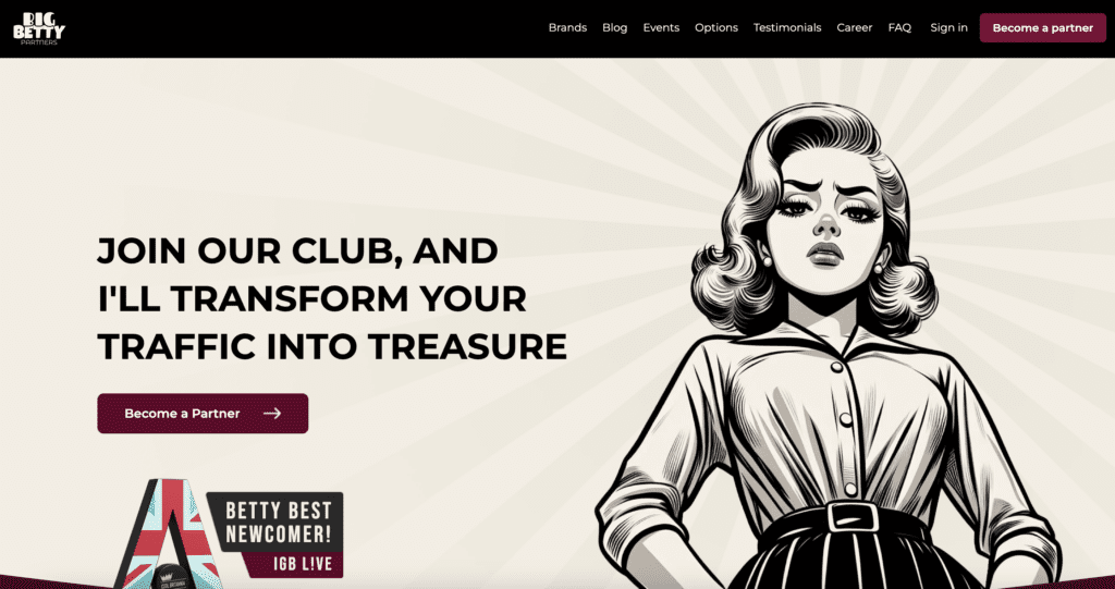 Se geram muito tráfego e vão atrás de recompensas sérias, o Big Betty é a vossa escolha. Esta marca poderosa foi concebida especificamente para afiliados de alto tráfego que querem estruturas de comissão competitivas e os melhores acordos de RevShare. Apostando na retenção de jogadores e conversões de alto valor, garantem que o vosso trabalho árduo se traduz em ganhos consistentes e numa parceria verdadeiramente lucrativa.