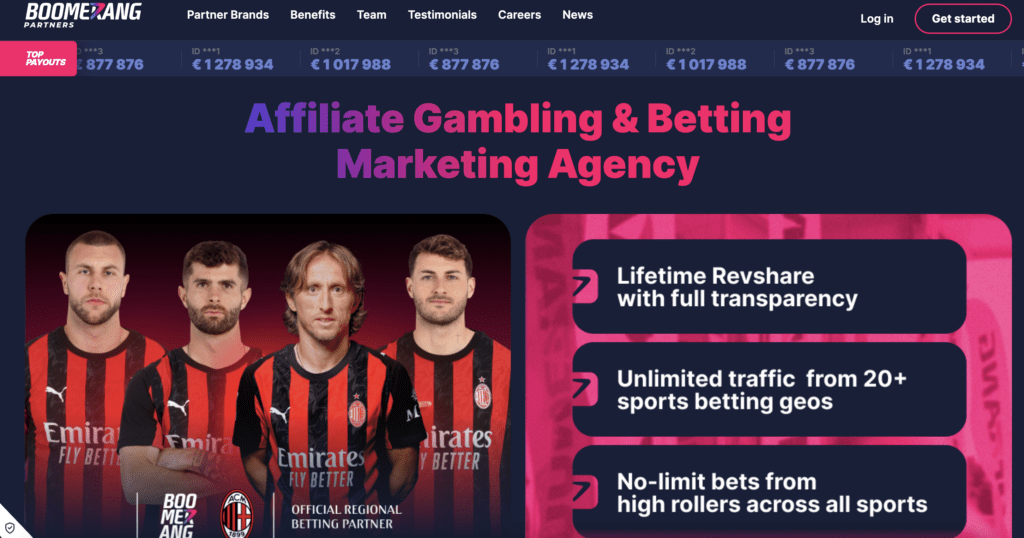 Não é de admirar que o Boomerang apareça em praticamente todas as listas dos melhores programas de afiliados de casino. Ganharam prémios no SiGMA e ICE Barcelona por alguma razão, mostrando a todos que as soluções de tráfego inovadoras e a alta conversão de jogadores realmente importam. Esta rede premiada é apreciada pelo seu rastreamento transparente e planos de comissão personalizados, tornando-se na escolha perfeita para parceiros que valorizam a fiabilidade e o desempenho líder de mercado.